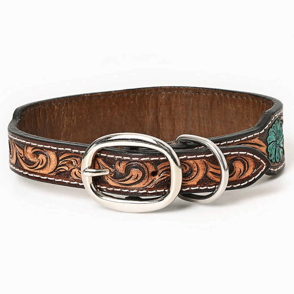 BAR H EQUINE Ella Young Turquoise Flower Hand Painted Western Leather Dog Collar