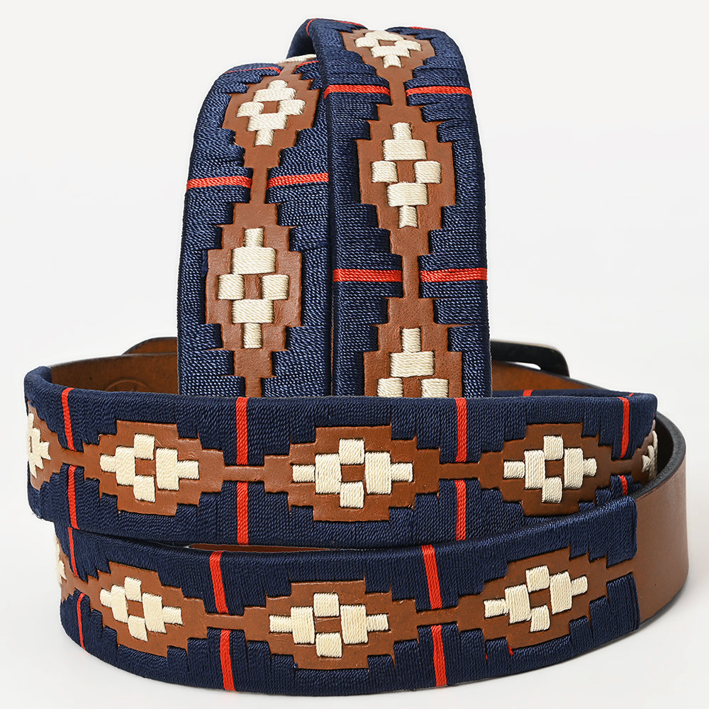 BAR H EQUINE Western Genuine Leather Men And Women Brown Belt Embroidered Blue Red & White