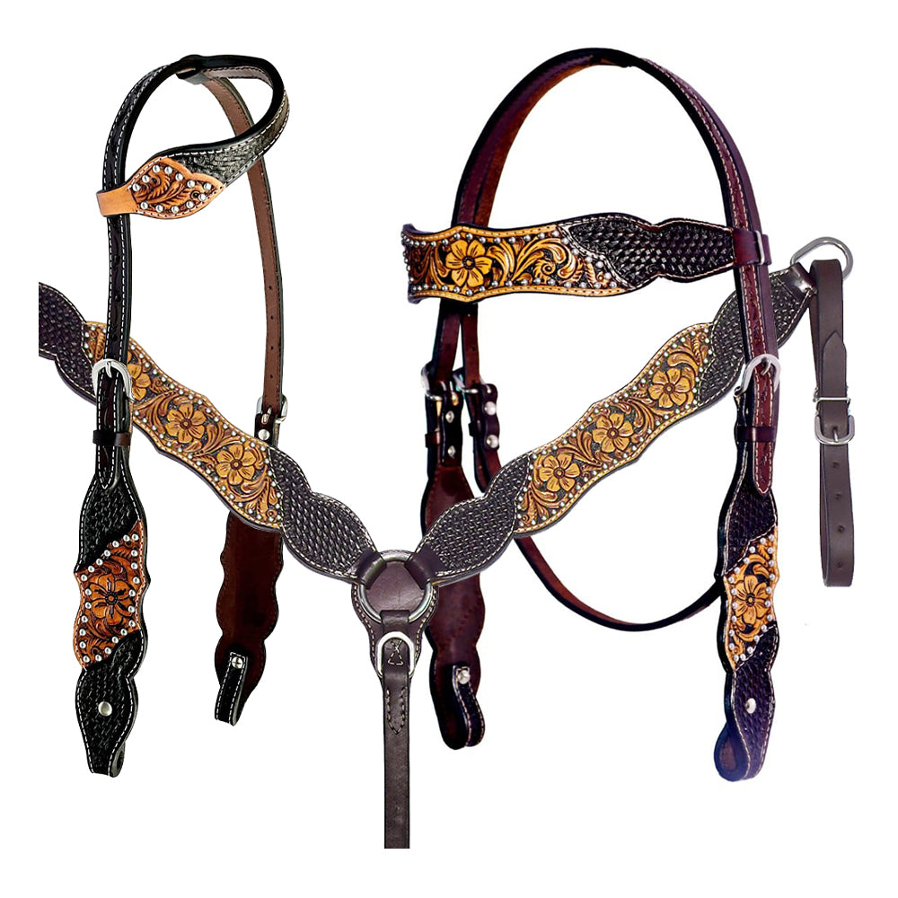 BAR H EQUINE Western Leather Horse Premium Headstall & Breast Collar Set
