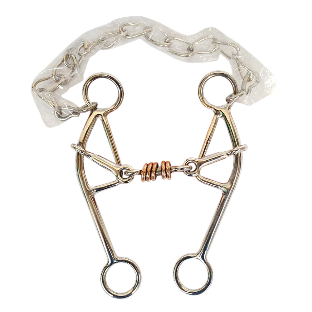 The 5" Snaffle Mouth Gag Bit With 7-1/4" Shanks Is Expertly Designed For Enhanced Communication And Control. Crafted From High-Quality Stainless Steel, This Bit Is Durable, Rust-Resistant, And Built To Last. The Double-Jointed Mouthpiece Features A Dogbone Link That Evenly Distributes Pressure, Reducing Discomfort On The Tongue And Bars For A More Comfortable Fit. Additionally, The Copper Rollers Promote Salivation And Relaxation, Encouraging A Softer And More Responsive Mouth. Ideal For Western Riding Disciplines, This Bit Provides The Perfect Balance Of Leverage And Flexibility, Making It A Valuable Addition To Any Tack Collection.