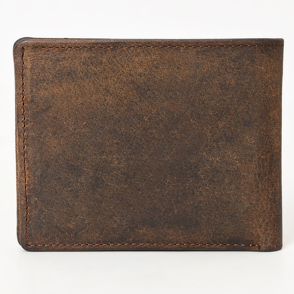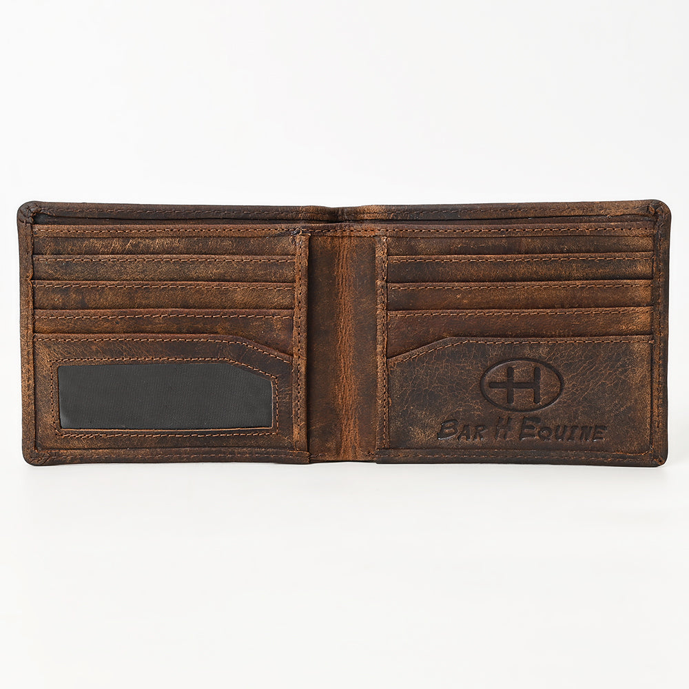 BAR H EQUINE American Western Bifold Men Genuine Leather Wallet Brown