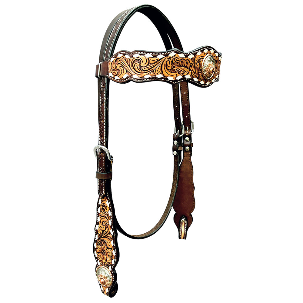 Bar H Equine Horse Genuine Leather Floral Design Breast Collar ,Headstall Brown