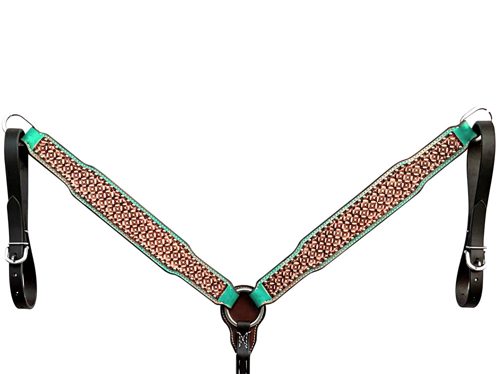 Bar H Equine Horse Genuine Leather Hand Tooled Breast Collar ,Headstall Brown
