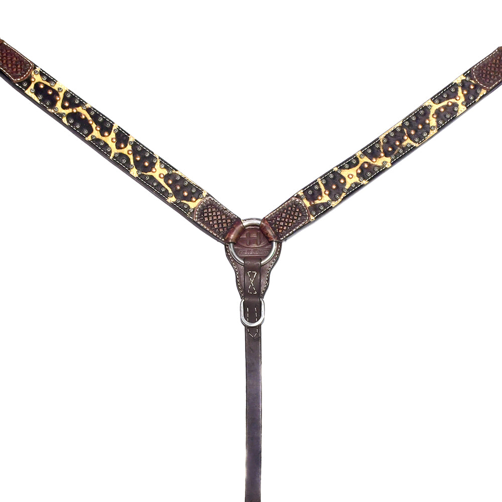 Bar H Equine Premium Hand Tooled Leather Stainless Steel Hardware Breast Collar Brown