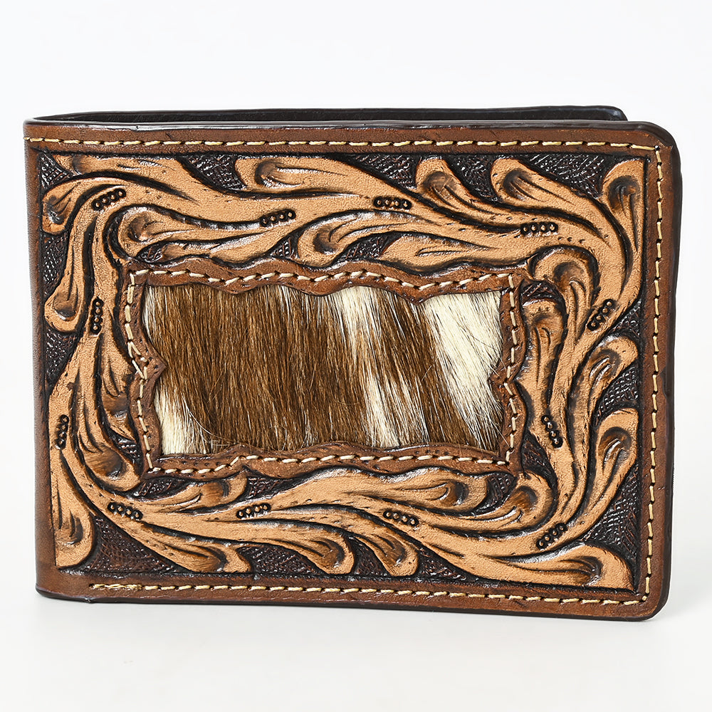 BAR H EQUINE Rodeo Floral Bifold & Trifold Wallet For Men Women HairOn Genuine Leather Brown