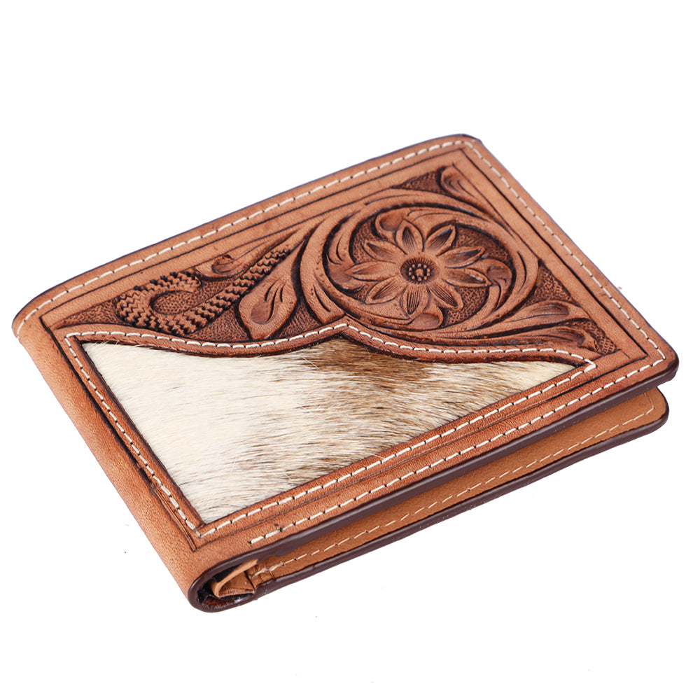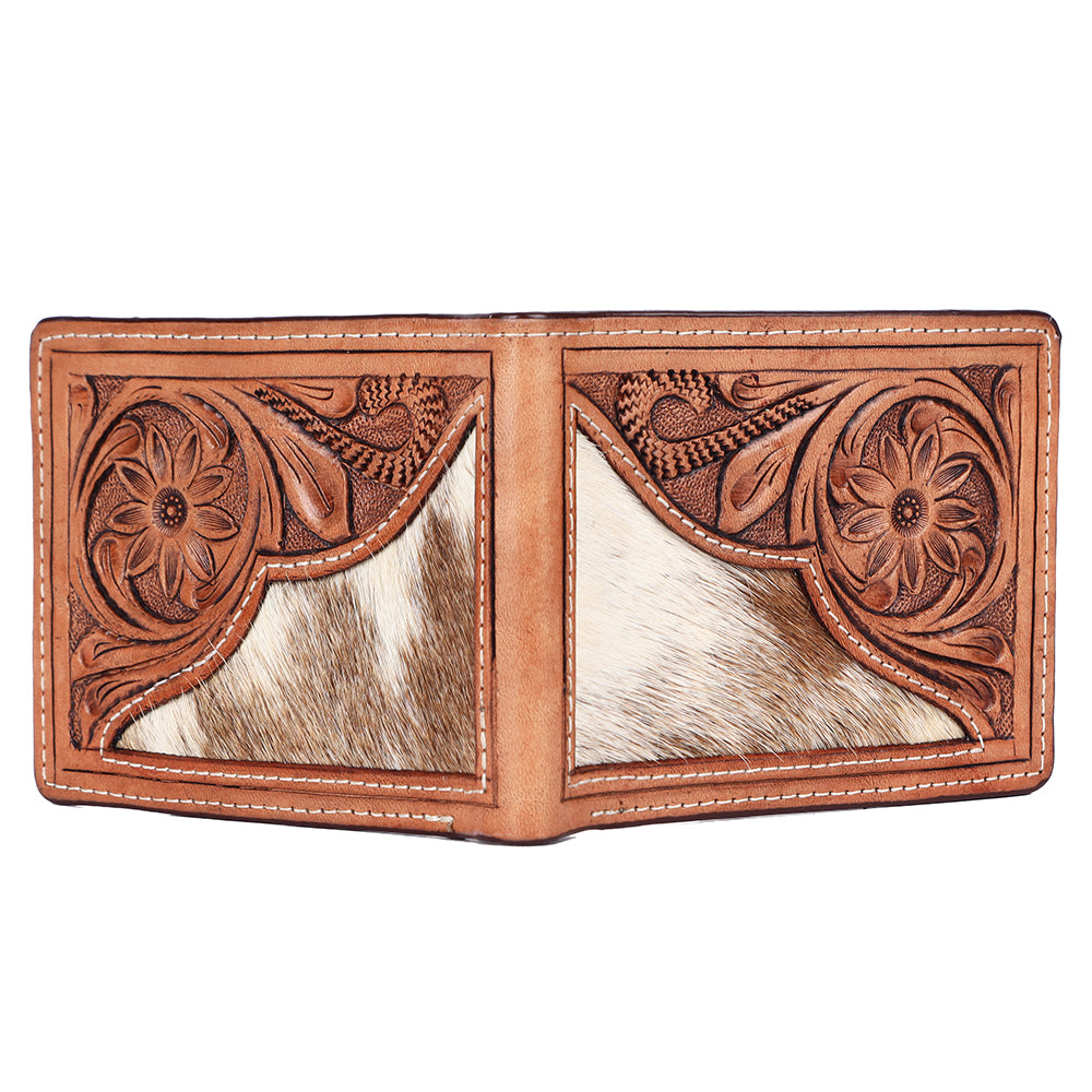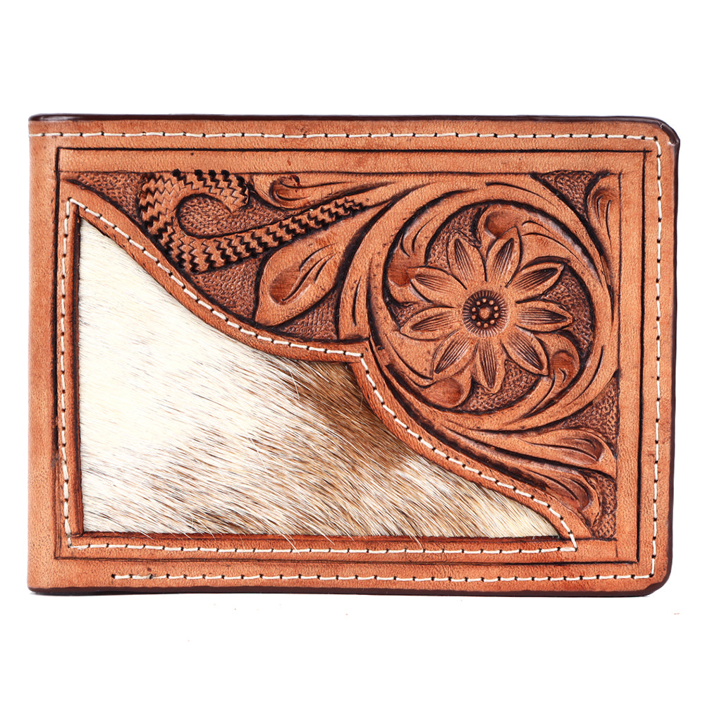 BAR H EQUINE Rodeo Floral Bifold & Trifold Wallet For Men Women HairOn Genuine Leather Tan