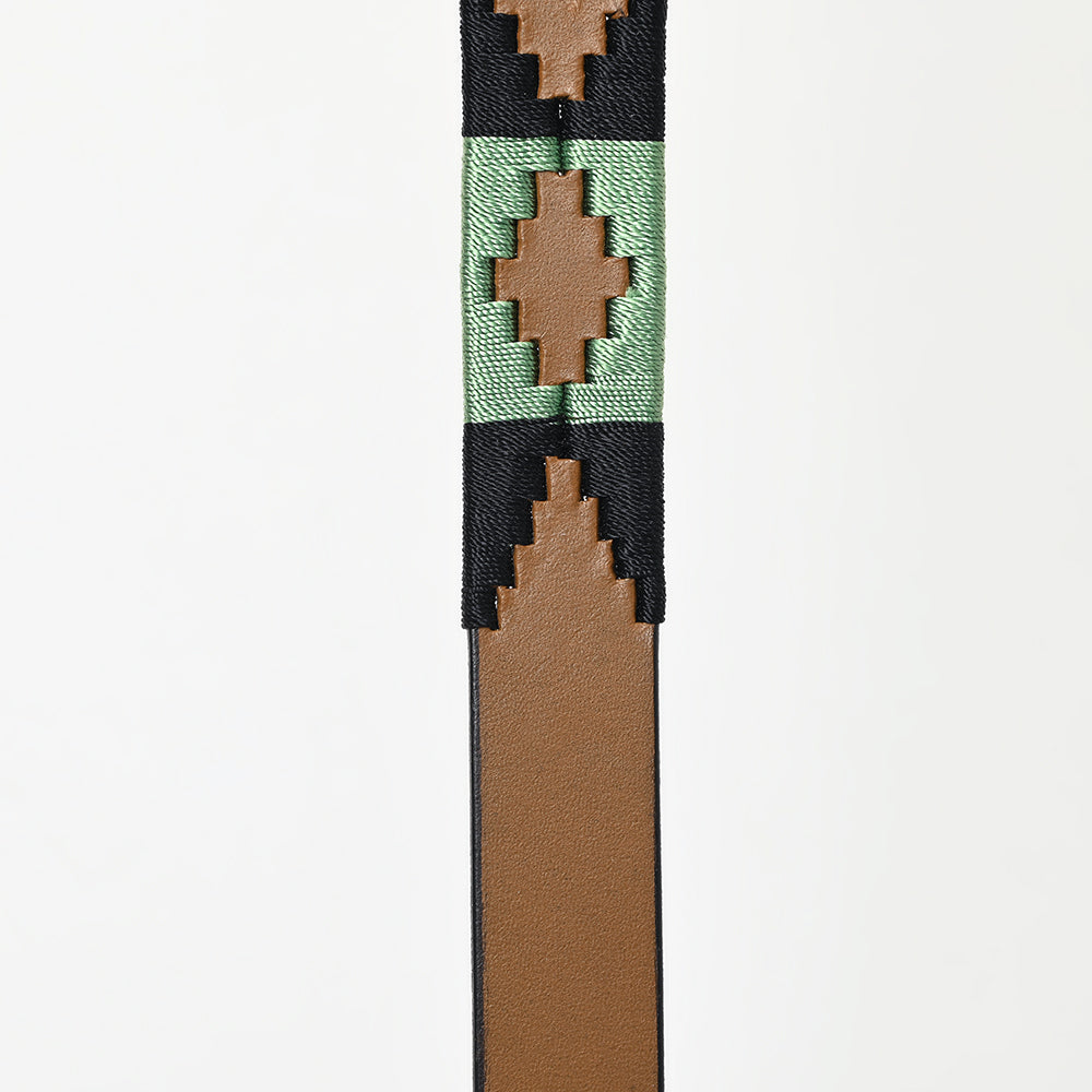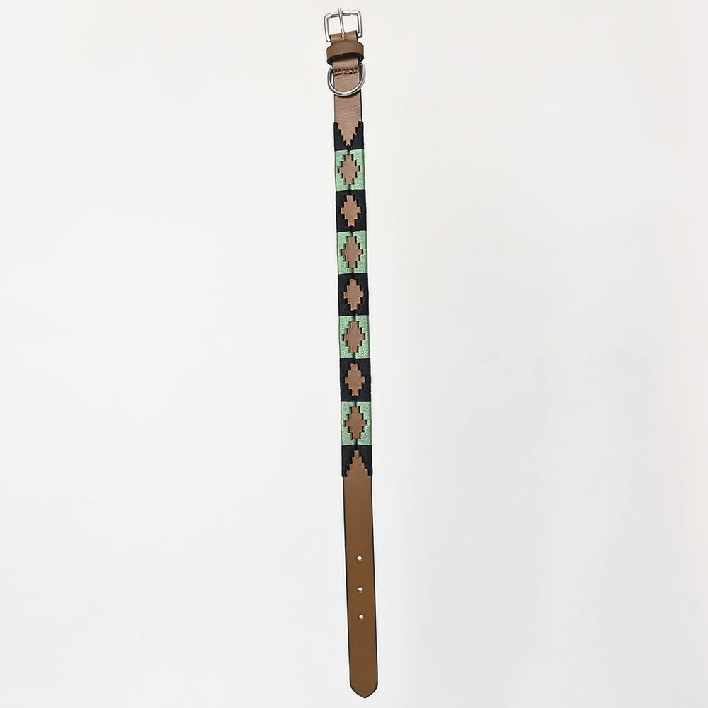 BAR H EQUINE Western Genuine Leather Dog Collar Embroidered Black & Light Green
