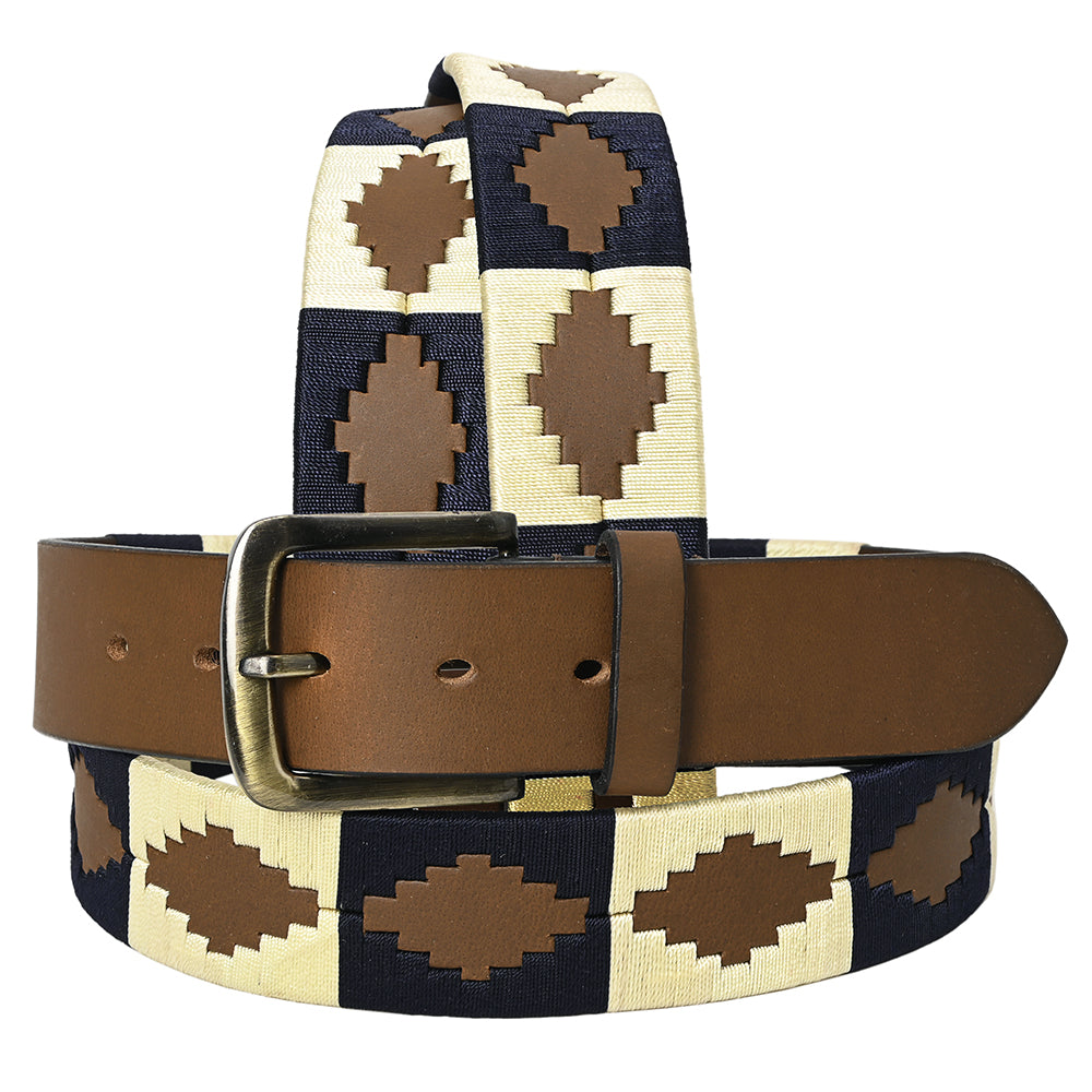 BAR H EQUINE Western Genuine Leather Men And Women Brown Belt Embroidered Beige & Black