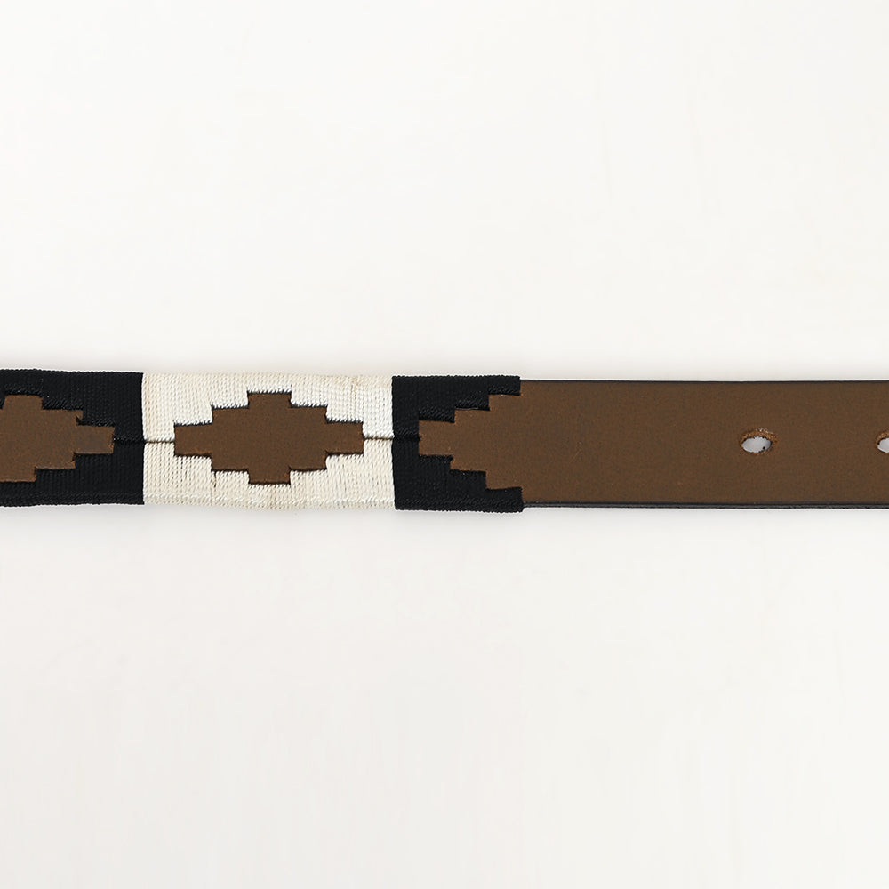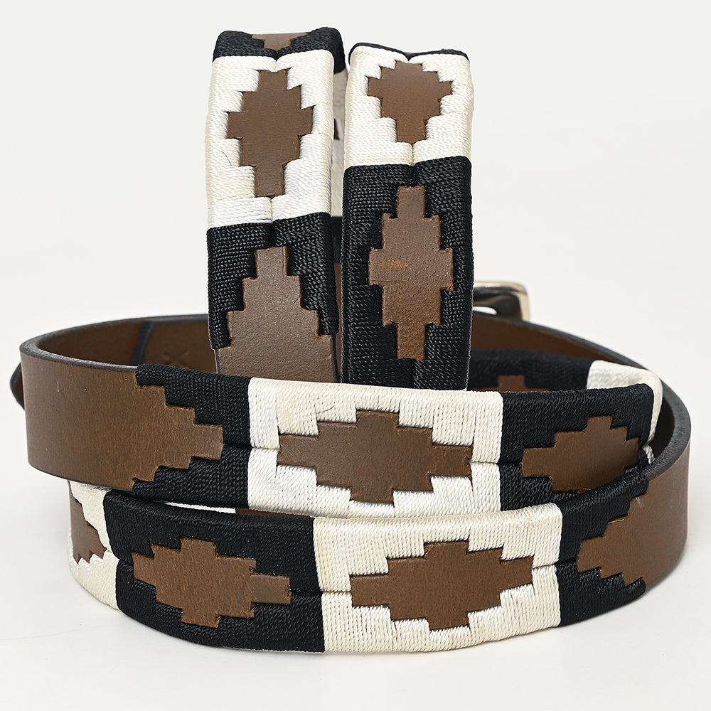 BAR H EQUINE Western Genuine Leather Men And Women Brown Belt Embroidered Black & White