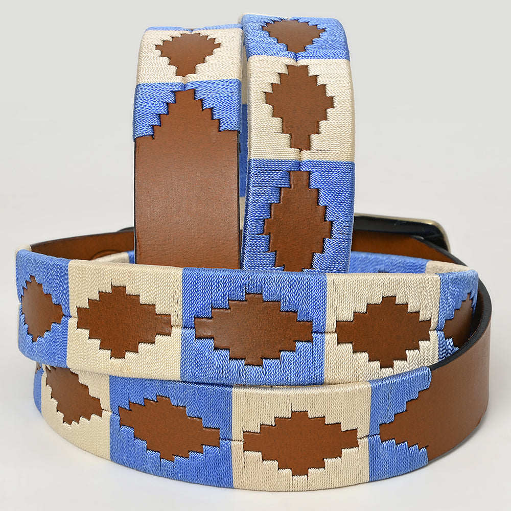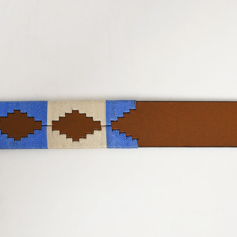 BAR H EQUINE Western Genuine Leather Men And Women Brown Belt Embroidered Blue & White