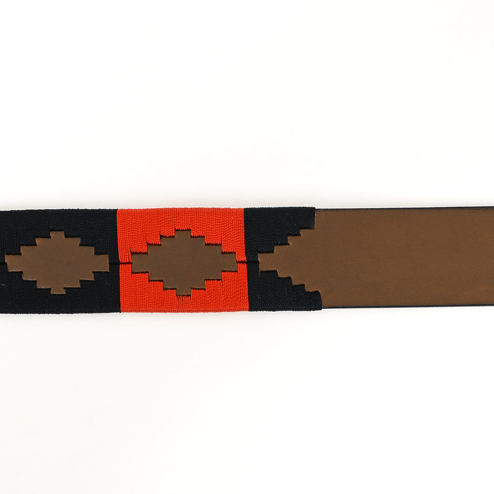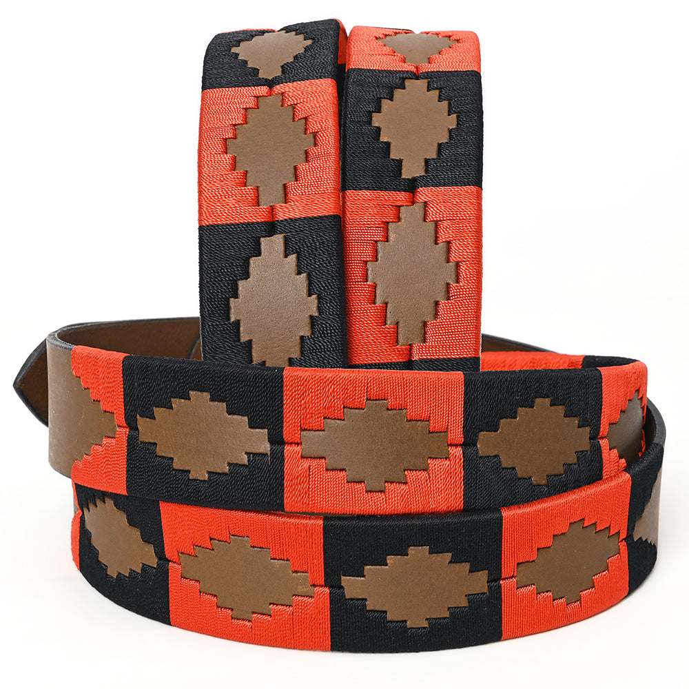 BAR H EQUINE Western Genuine Leather Men And Women Brown Belt Embroidered Orange & Black