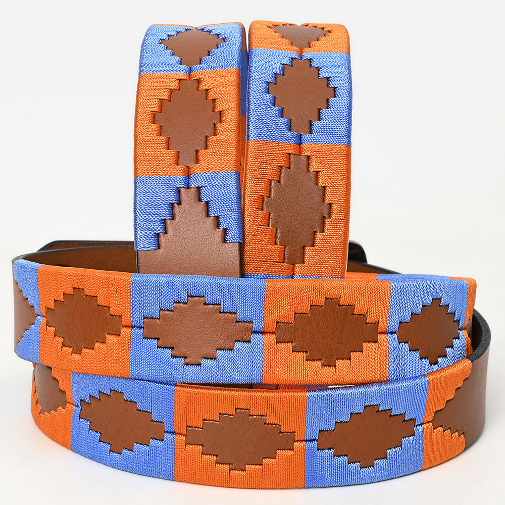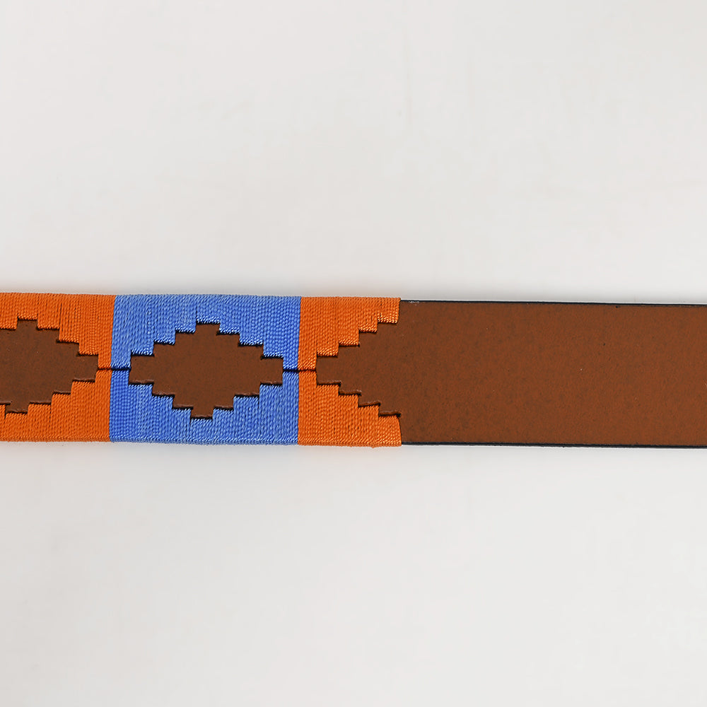 BAR H EQUINE Western Genuine Leather Men And Women Brown Belt Embroidered Orange & Blue
