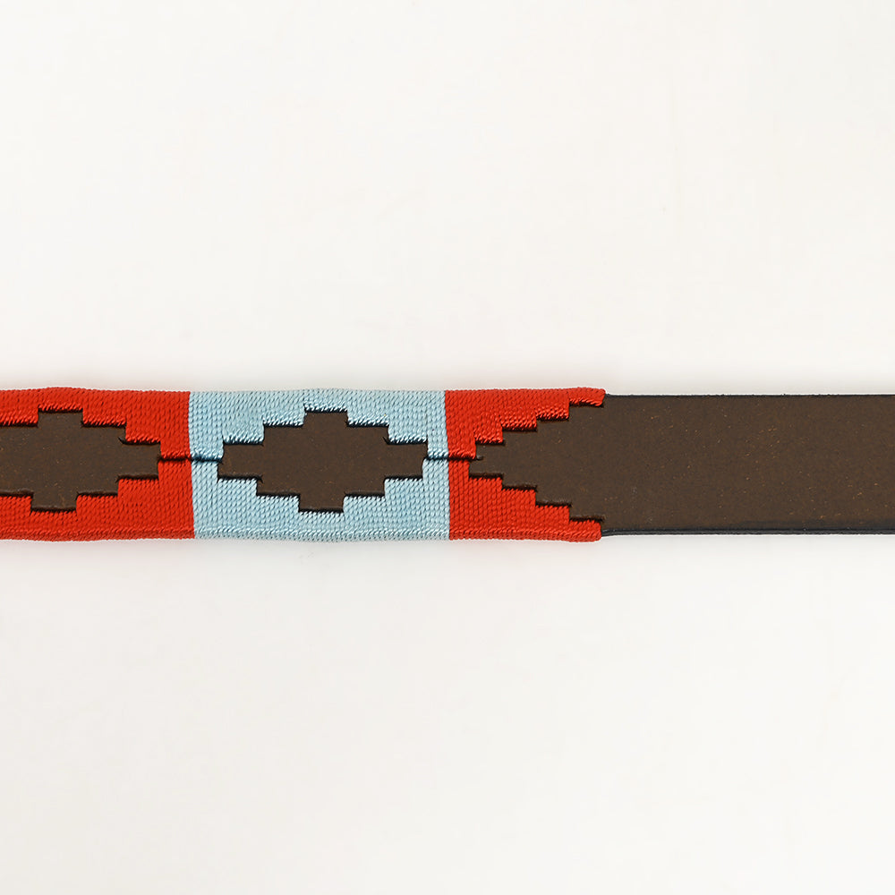 BAR H EQUINE Western Genuine Leather Men And Women Brown Belt Embroidered Red & Light Blue
