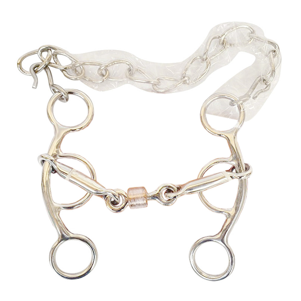 BAR H EQUINE Western Horse Short Shank Three Piece Copper Roller Stainless Steel Chain Bit