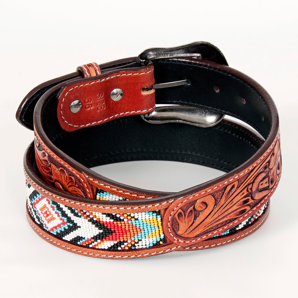 Experience The Craftsmanship Of The Bar H Tack Leather Belt: Each Belt Is Meticulously Crafted With Hand Tooling, Hand Carving, And Hand Finishing Using Premium Genuine Vegetable-Tanned Cowhide Leather. It'S Complemented With Gorgeous Beadwork. Ideal For Both Casual And Formal Attire, These Leather Belts Stand Out In Every Season.