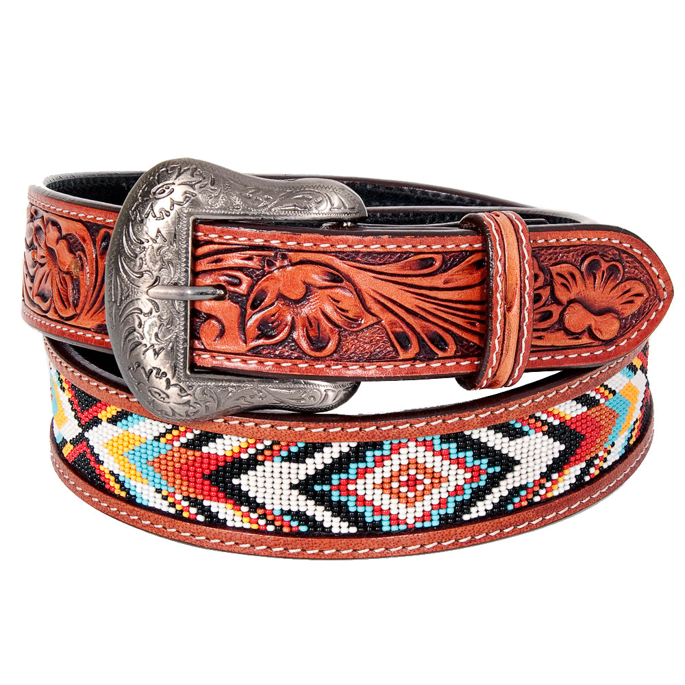 Bar H Equine Hand Carved Western Leather Belt Men Women Beaded