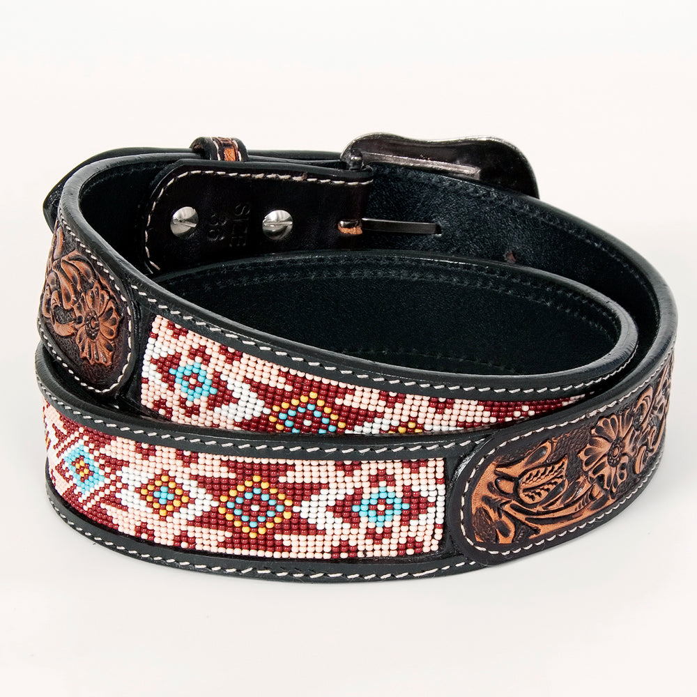 Experience The Craftsmanship Of The Bar H Tack Leather Belt: Each Belt Is Meticulously Crafted With Hand Tooling, Hand Carving, And Hand Finishing Using Premium Genuine Vegetable-Tanned Cowhide Leather. It'S Complemented With Gorgeous Beadwork. Ideal For Both Casual And Formal Attire, These Leather Belts Stand Out In Every Season.