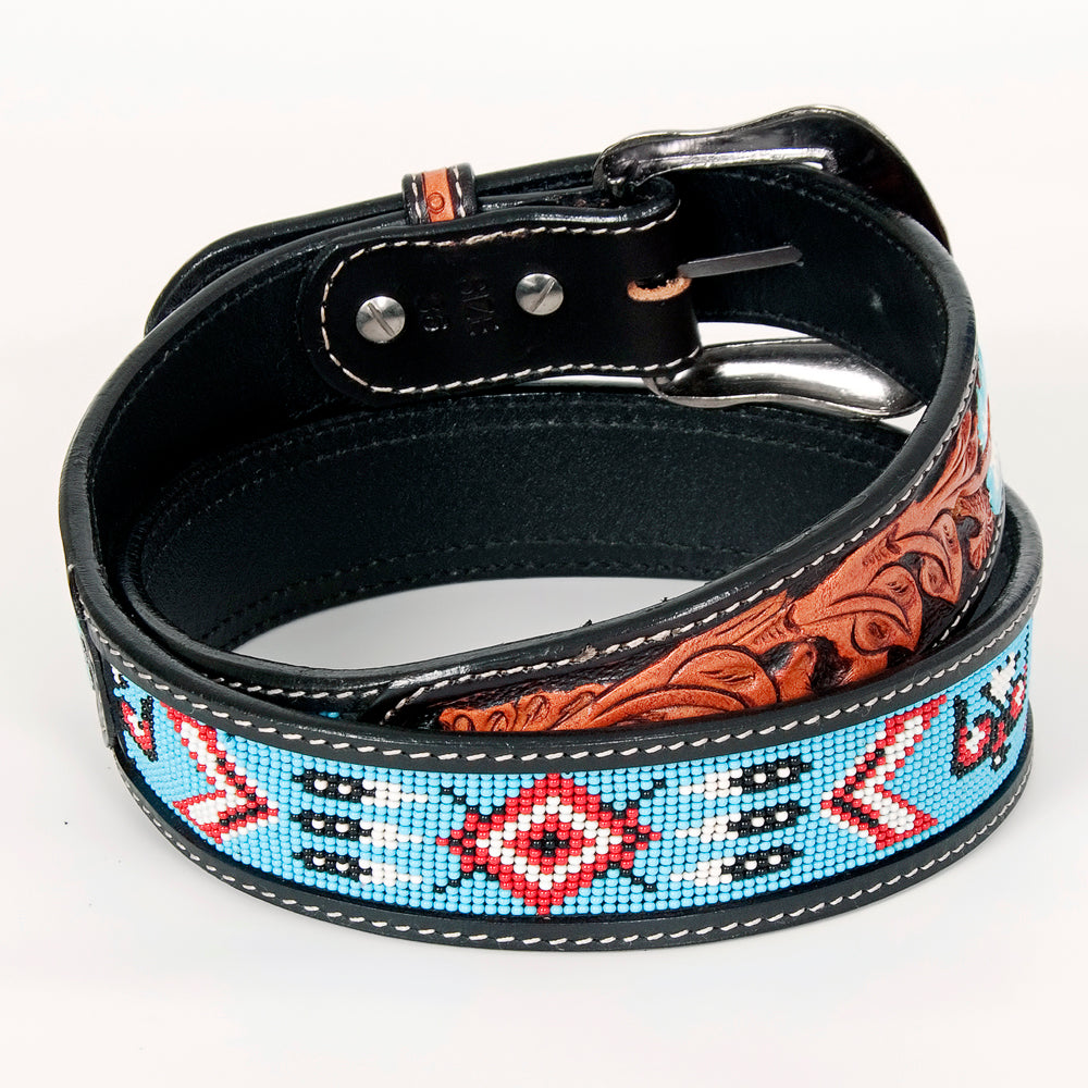 Experience The Craftsmanship Of The Bar H Tack Leather Belt: Each Belt Is Meticulously Crafted With Hand Tooling, Hand Carving, And Hand Finishing Using Premium Genuine Vegetable-Tanned Cowhide Leather. It'S Complemented With Gorgeous Beadwork. Ideal For Both Casual And Formal Attire, These Leather Belts Stand Out In Every Season.
