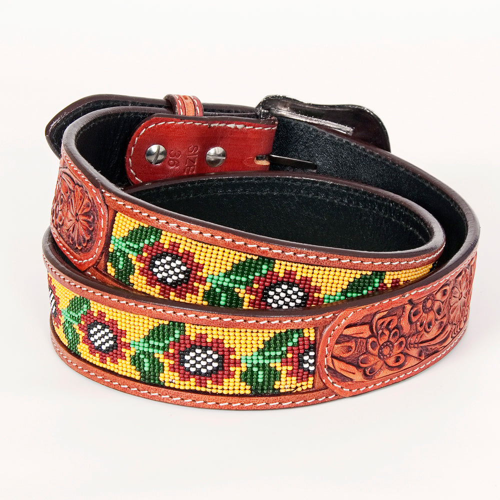 Experience The Craftsmanship Of The Bar H Tack Leather Belt: Each Belt Is Meticulously Crafted With Hand Tooling, Hand Carving, And Hand Finishing Using Premium Genuine Vegetable-Tanned Cowhide Leather. It'S Complemented With Gorgeous Beadwork. Ideal For Both Casual And Formal Attire, These Leather Belts Stand Out In Every Season.