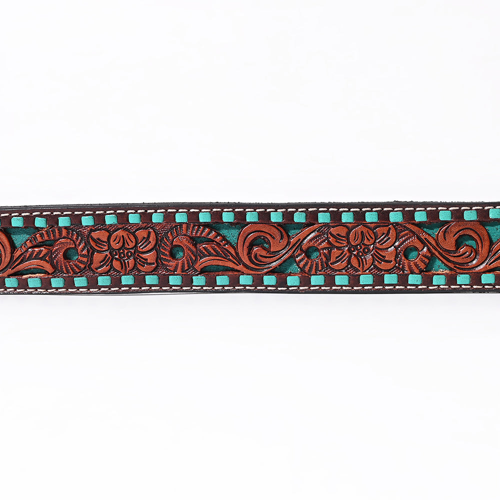BAR H EQUINE Turquoise Buckstitch Floral Hand Carved Western Leather Men And Women Belt